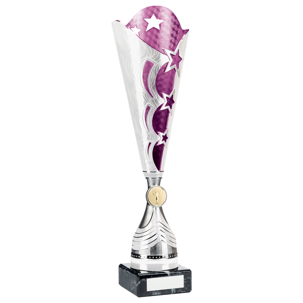 Bright Silver and Purple Cup Trophy in 3 sizes