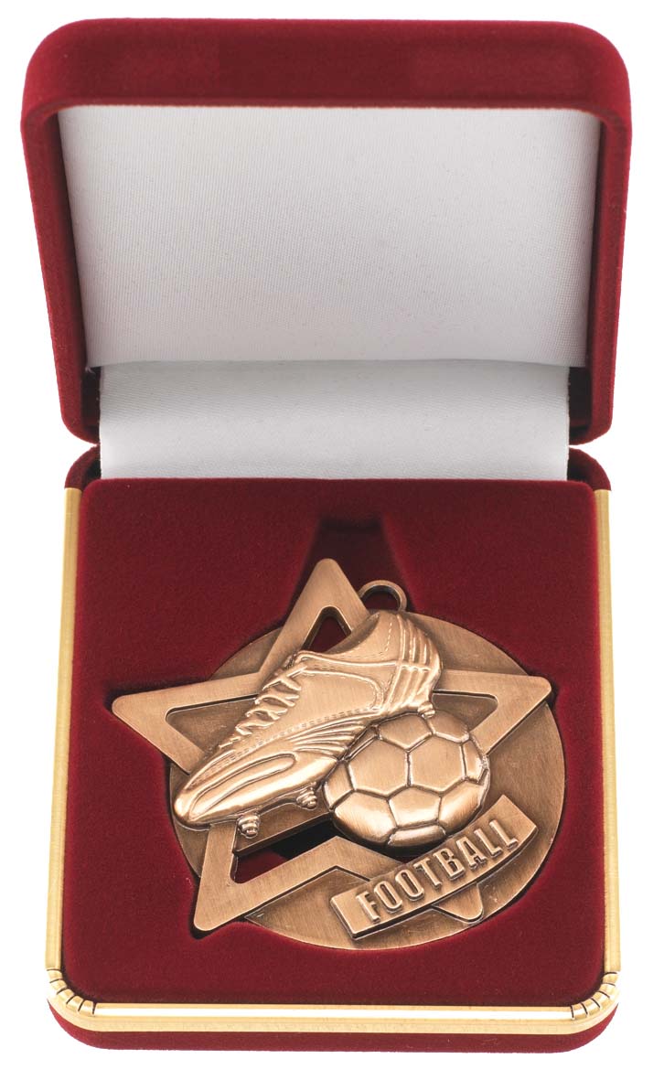60mm Star Medal in Luxury Box Gold Silver or Bronze Finish,5586, SM1B