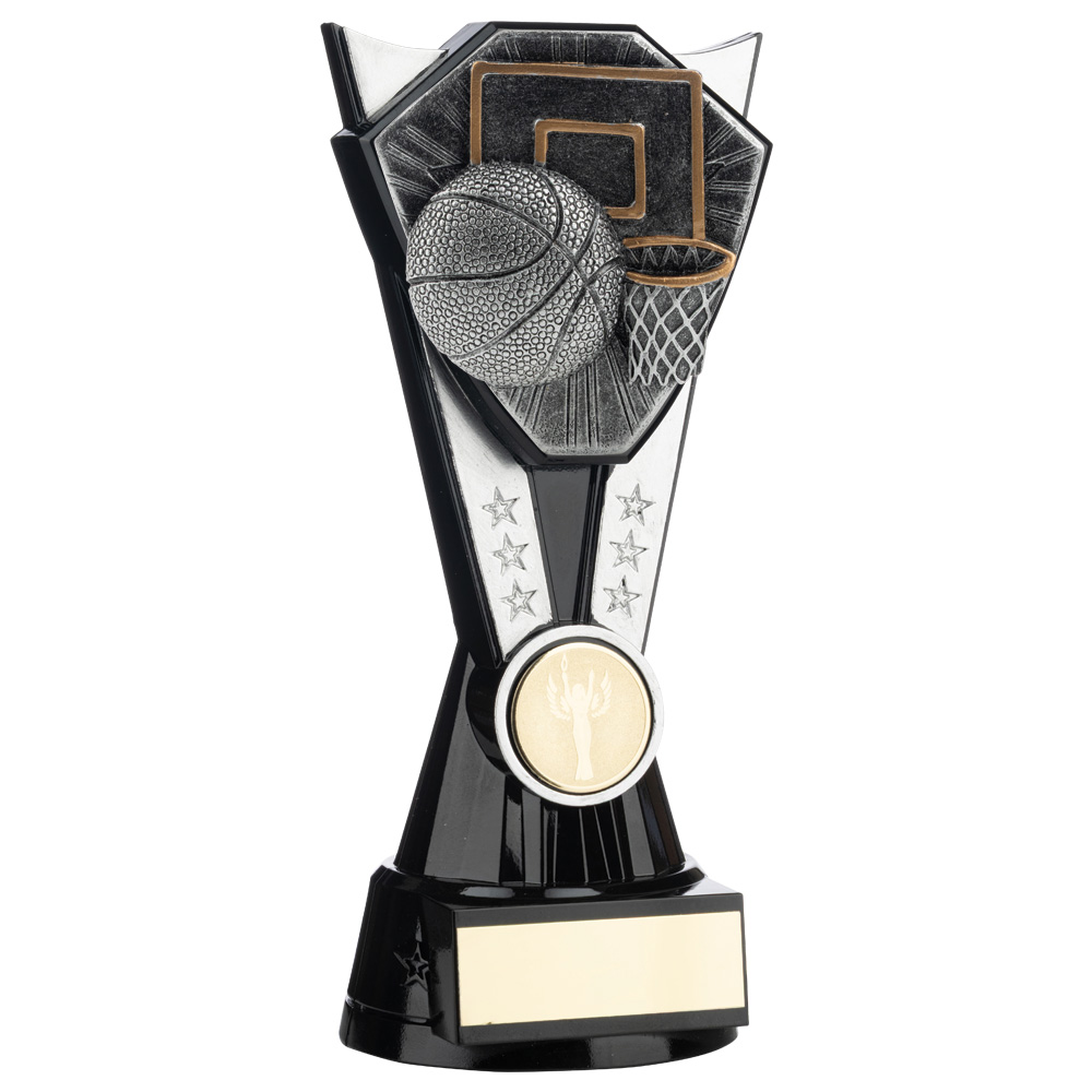 Two Tone Stand Basketball Ball and Net Silver and Black 4 sizes